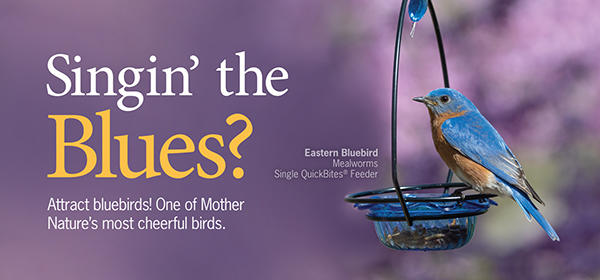 Keep the relationship going by offering a clean nest box and your feeders filled with bluebirds' favorite foods like our new Bluebird Bugberry Blend®, Bark Butter® products, SuperSuet® and mealworms.